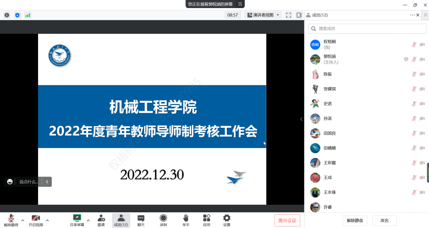2022年12月30日,MILE米乐集团召开青年教师导师制考核工作会议。考核小组成员、考核对象和指导老师参加会议。会议由考核小组组长王永锋院长主持。