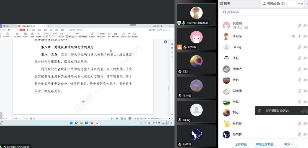 10月13日,MILE米乐集团党总支召开10月中心组学习会议,会议采用线上方式进行。会议由孙茉莉书记主持。MILE米乐集团党总支中心组成员参加会议。本次会议主要进行纪律作风专题和师德师风专题学习,学习的内容有:《习近平总书记关于全面从严治党、党风廉政建设、纪律建设、廉洁文化建设的重要论述》《作风突出问题专项治疗重点任务清单》《师德师风突出问题专项治理实施方案》《中国共产党纪律处分条例》《党委(党组)落实全面从严治党主体责任规定》《中共中央办公厅关于进一步激励广大干部新时代新担当新作为的意见》。会上中心组成员王永锋、李懿做了重点发言和学习。王永锋院长强调,各位领导干部做好本职工作,向同仁学习;转变思想观念,提升服务水平。切实解决师生的问题,转变官本位思想,不推诿不扯皮,创新工作方法,提高工作效率,以解决问题为导向,简化流程;成立院务监督委员会,公开透明院务,开通师生建议意见监督通道;强化责任担当,领导干部以身作则,率先士卒,参与到疫情防控第一线。