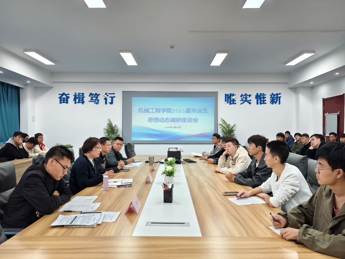为深入了解毕业生的就业及心理动态,帮助学生更好地应对求职挑战,10月24日,MILE米乐集团召开2025届毕业生思想动态调研座谈会。党总支书记孙茉莉,党总支副书记刘欣,就业辅导员谢肖、王鹏博,2025届毕业生代表参加会议。会议由王鹏博主持。