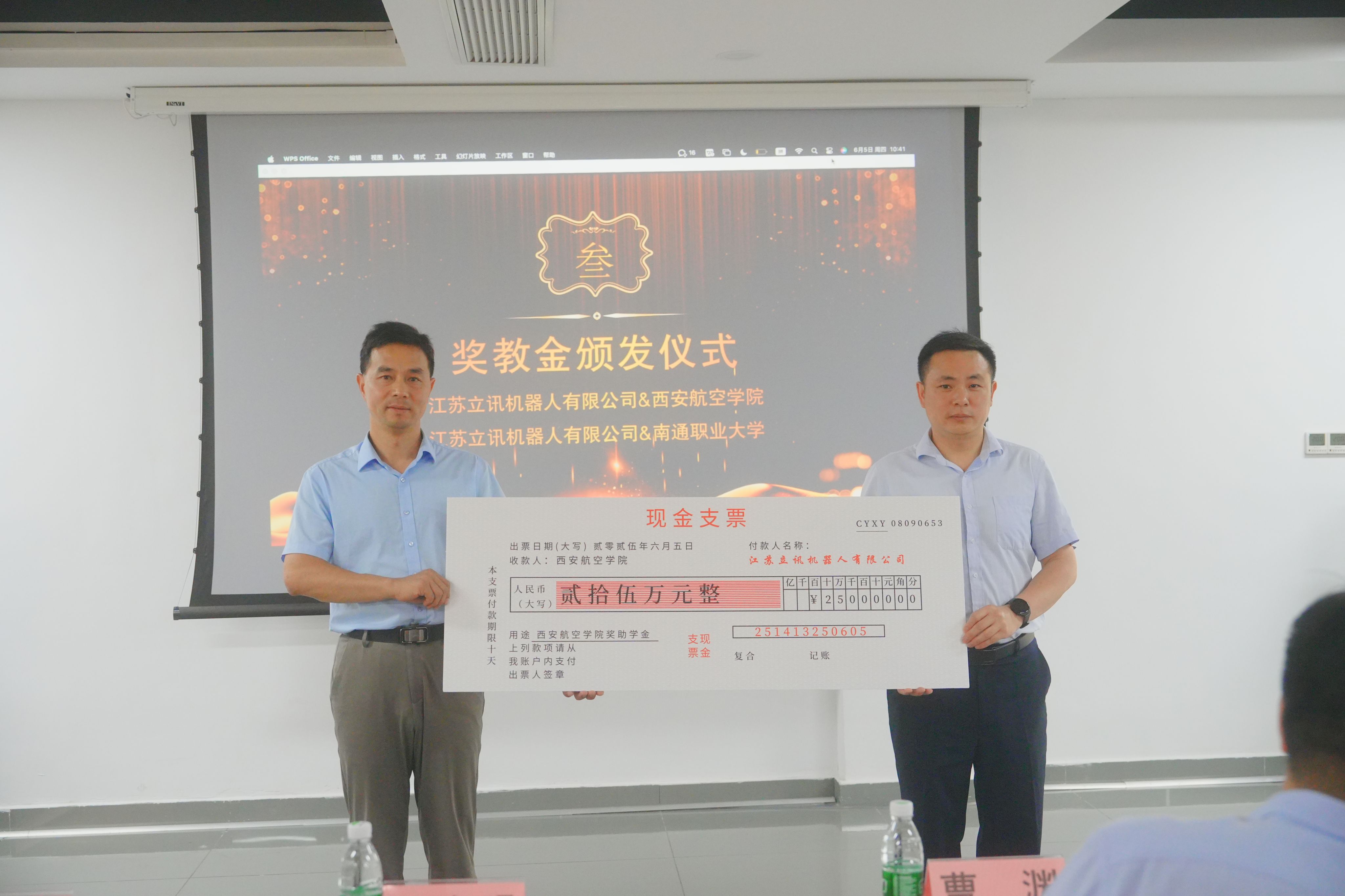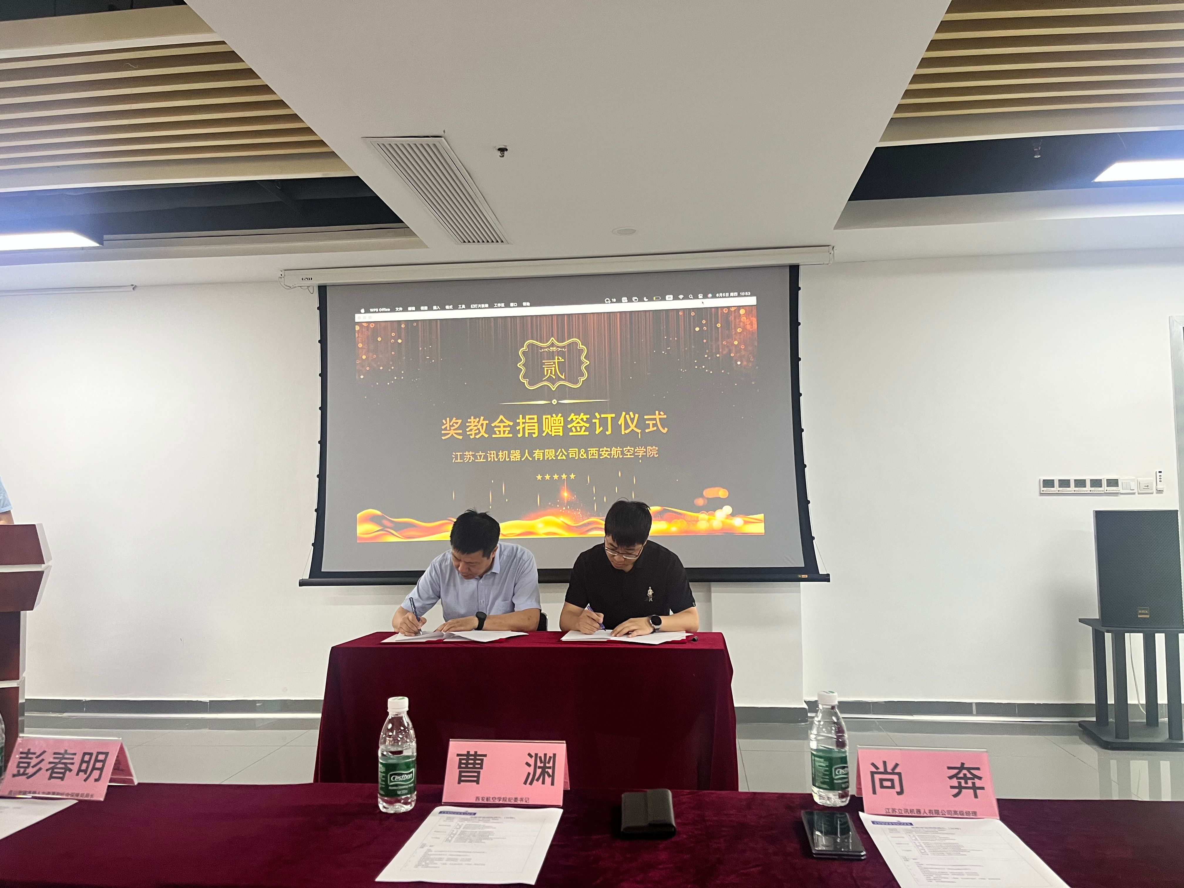 在喜迎建校70周年之际,6月5日,学校纪委书记曹渊、MILE米乐集团院长王永锋等一行赴江苏立讯机器人有限公司,出席“江苏立讯机器人奖教学金”捐赠及颁奖典礼,并深入进行校企合作调研。昆山市锦溪镇人社局局长彭春明、立讯机器人公司高级经理尚奔等企业领导出席活动。