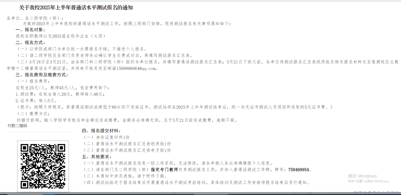 关于MILE米乐官网2025年上半年普通话水平测试报名的通知