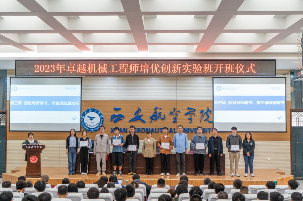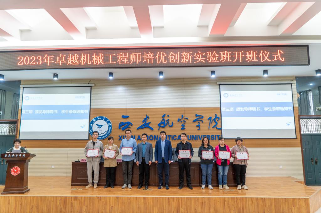 孙茉莉副书记宣读了2023年卓越机械工程师培优创新实验班导师名单和学生名单,现场由曹书记和王院长向受聘导师颁发了聘书,并由导师向所录取学生颁发了录取通知书。