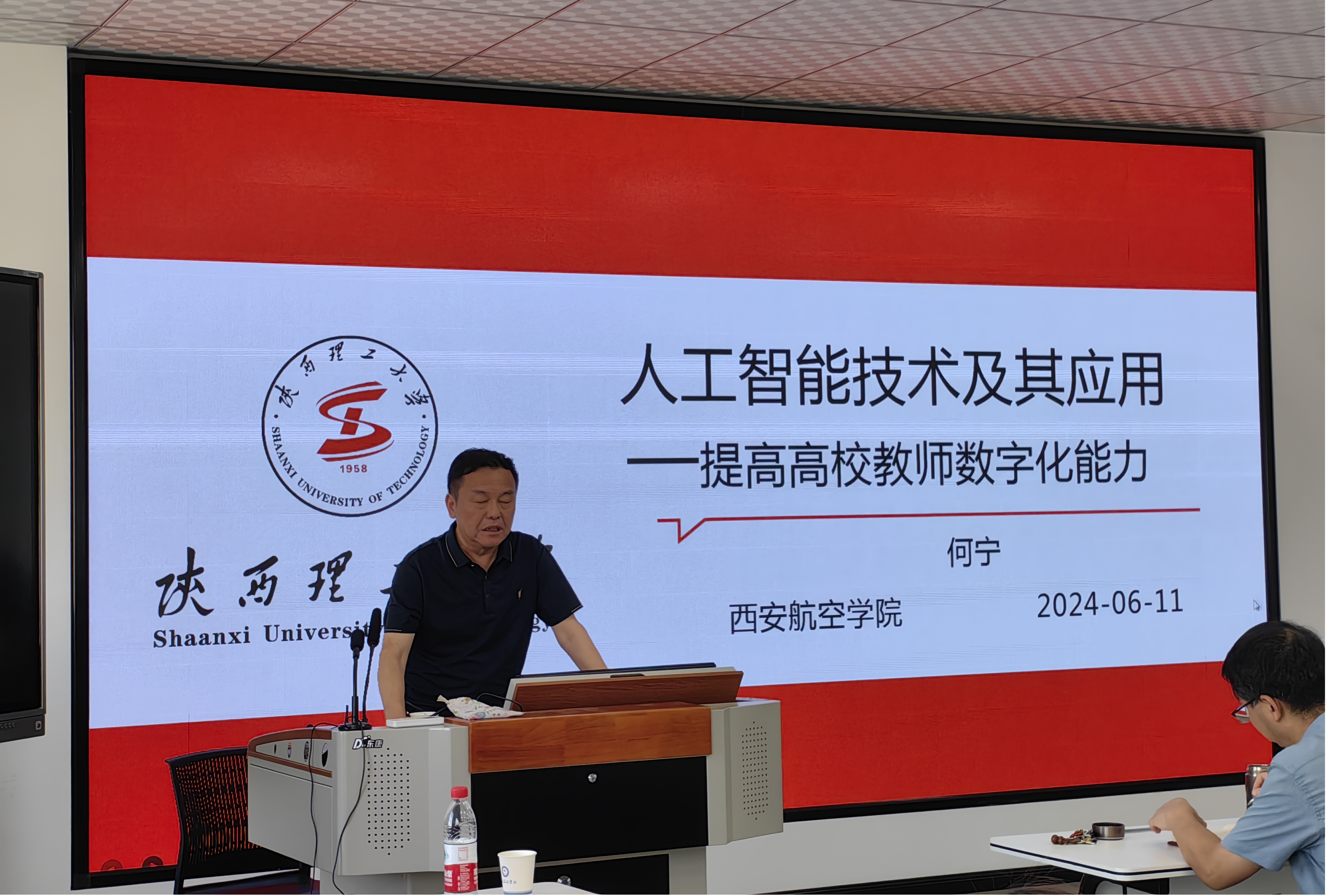 讲座中,何宁教授围绕正确认识人工智能、人工智能发展历程、人工智能技术原理、人工智能应用领域、重塑高等教育形态几个方面,重点讲述了如何利用人工智能技术提高高校教师数字化能力等内容。讲座结束后,部分教师就人工智能技术在我院相关专业中的应用及课程体系设置等具体问题进行了深入的探讨与现场交流。