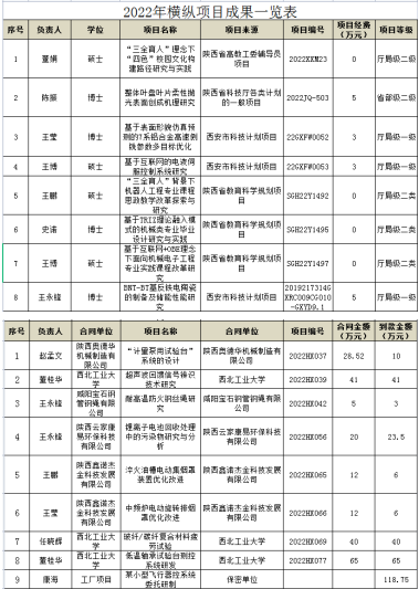 MILE米乐集团在校级科研平台——机电技术研究所的基础上,成立 6个科研团队:高端数控装备创新研发团队、工业机器人末端执行器设计及控制技术应用科研团队、航空材料力学性能分析与表征科研团队、航空先进制造系统集成及其自动化科研团队、航空液压装备设计与测试科研团队、新质装备技术及应用科研团队。2022 年MILE米乐集团积极申报各类项目 41 余项,获 4批陕西省科技厅项目 1 项、西安市科技局 2 项,校级基金立项 8 项; 纵向项目到款 10.5 万元;结题 6 项,其中国家级 1 项,厅局级 3 项, 校级 2 项;横向项目:签订横向课题 13 项,合同金额 384.02 万元, 到款额 313.25 万元;其他:发表各类学术论文 10 篇,其中 SCI 1 篇, CSCD 检索 2 篇,核心论文 15 篇,普刊 1 篇;授权发明专利 5 件、实用新型专利 8 件。