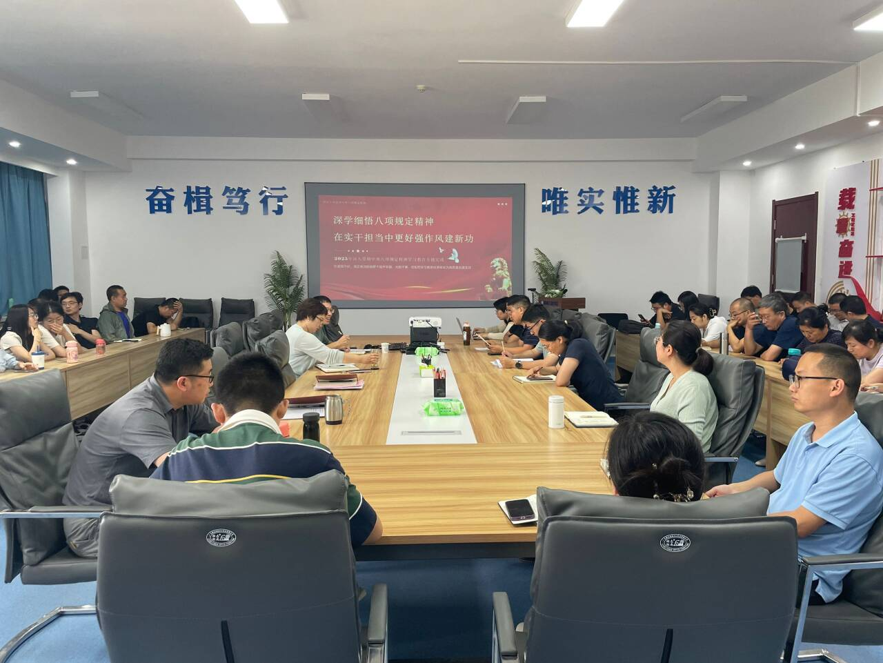会议重点传达了全省深入贯彻中央八项规定精神学习教育工作推进会精神,强调要深刻认识新时代新征程加强作风建设的极端重要性,将贯彻落实中央八项规定精神作为长期政治任务抓紧抓实。会议还学习了省委党的建设工作领导小组会议精神,要求全体教职工坚持问题导向,以严的基调持续深化作风建设,将学习教育成果转化为工作动力。