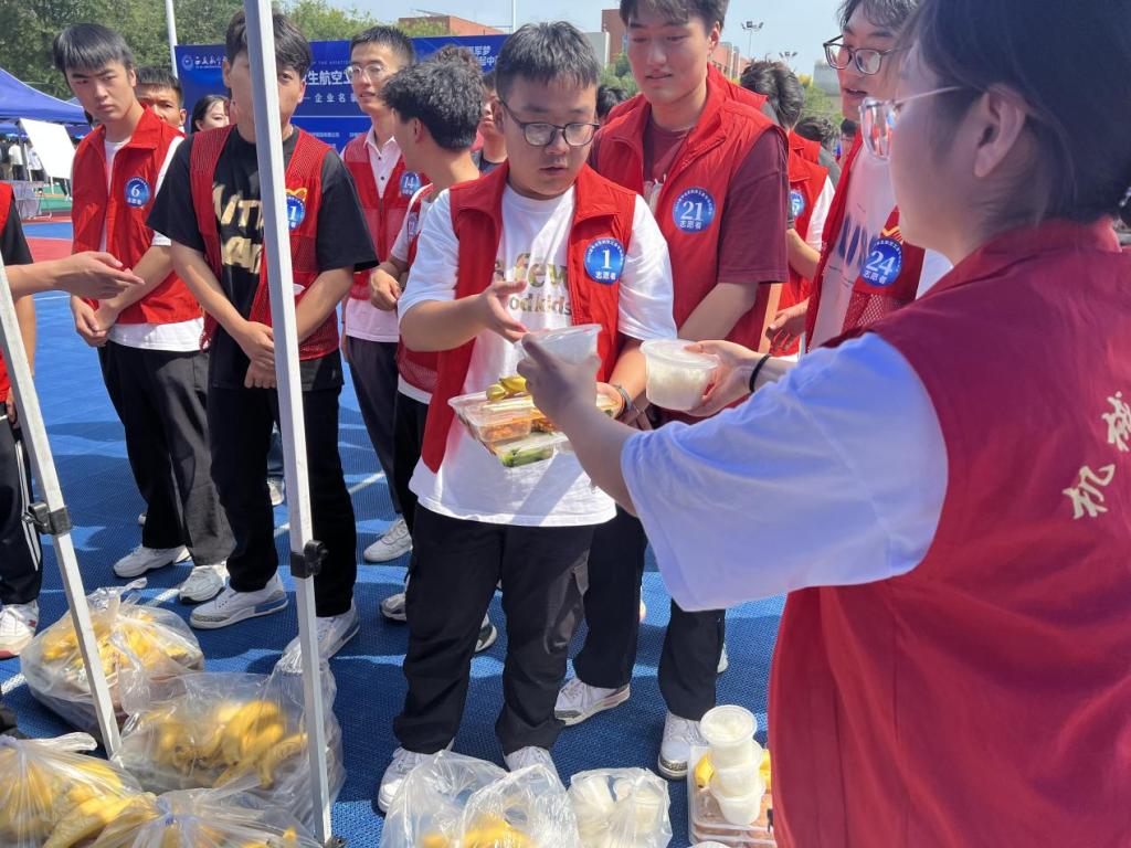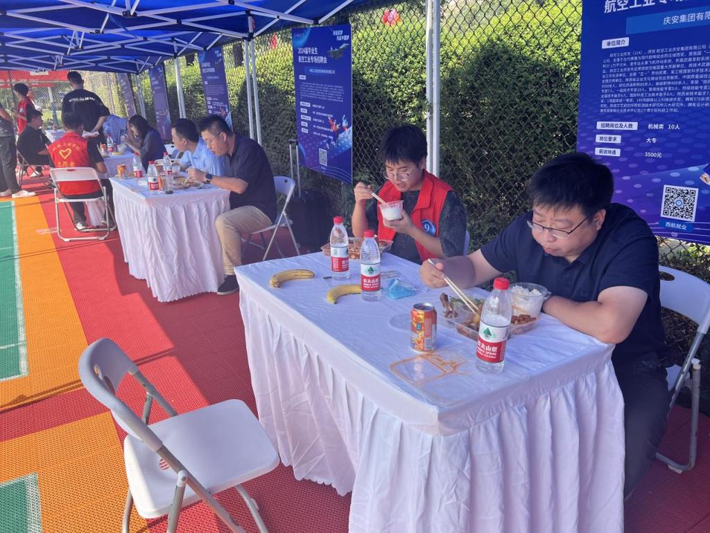 招聘会期间,志愿者们身穿红色马甲,忙碌的身影穿梭在各个角落,成为西航一道靓丽的风景线。他们吃苦耐劳、尽职尽责、热情服务,充分展现了“奉献,友爱,互助,进步”的志愿服务精神,得到了用人单位的高度赞扬,提升了MILE米乐集团服务社会的良好形象。学校也贴心为企业及志愿者们提供爱心盒饭,包含水果及饮料、矿泉水,给志愿者们补充体力,稍作休整为接下来的工作加油蓄力。