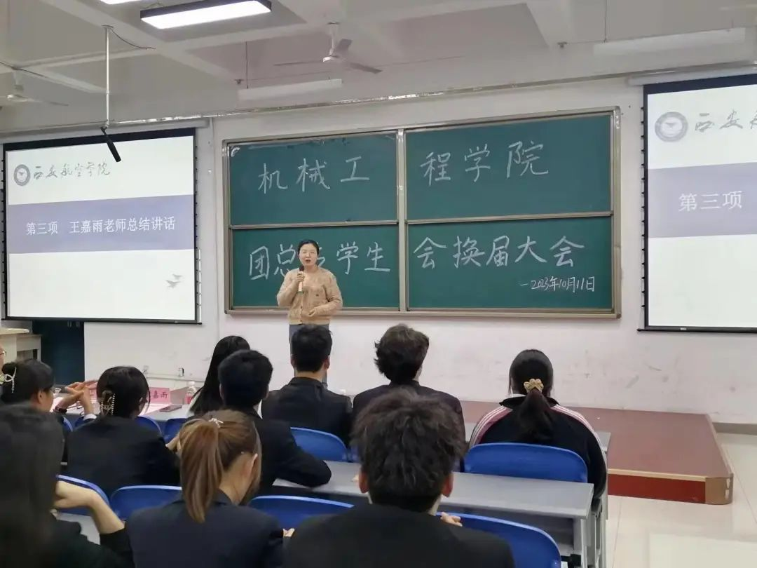 第十二届团总支学生会主席杨晗飞为新生提出要求,并对老师表示感谢,相信在未来的日子里,团总支学生会会因为每一个人的努力而变得更加美丽,更加值得同学们信赖。