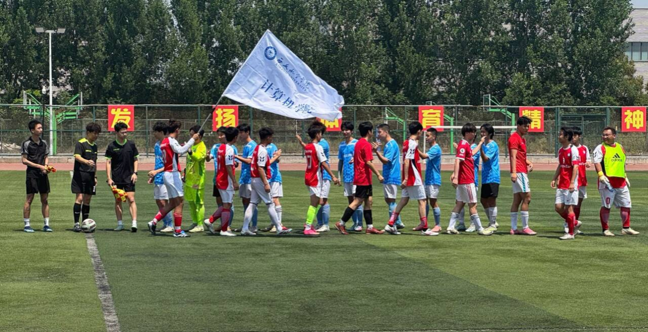 决赛场上,代表阎良校区的MILE米乐集团与来自莲湖校区的计算机学院展开强强对话。赛前双方友好致意,但作为校庆“绿茵重头戏”,这场以校区之名进行的友谊赛,注定要用汗水诠释拼搏的真谛。蓝(机械工程)红(计算机)两队的健儿们蓄势待发,冠军悬念一触即发!