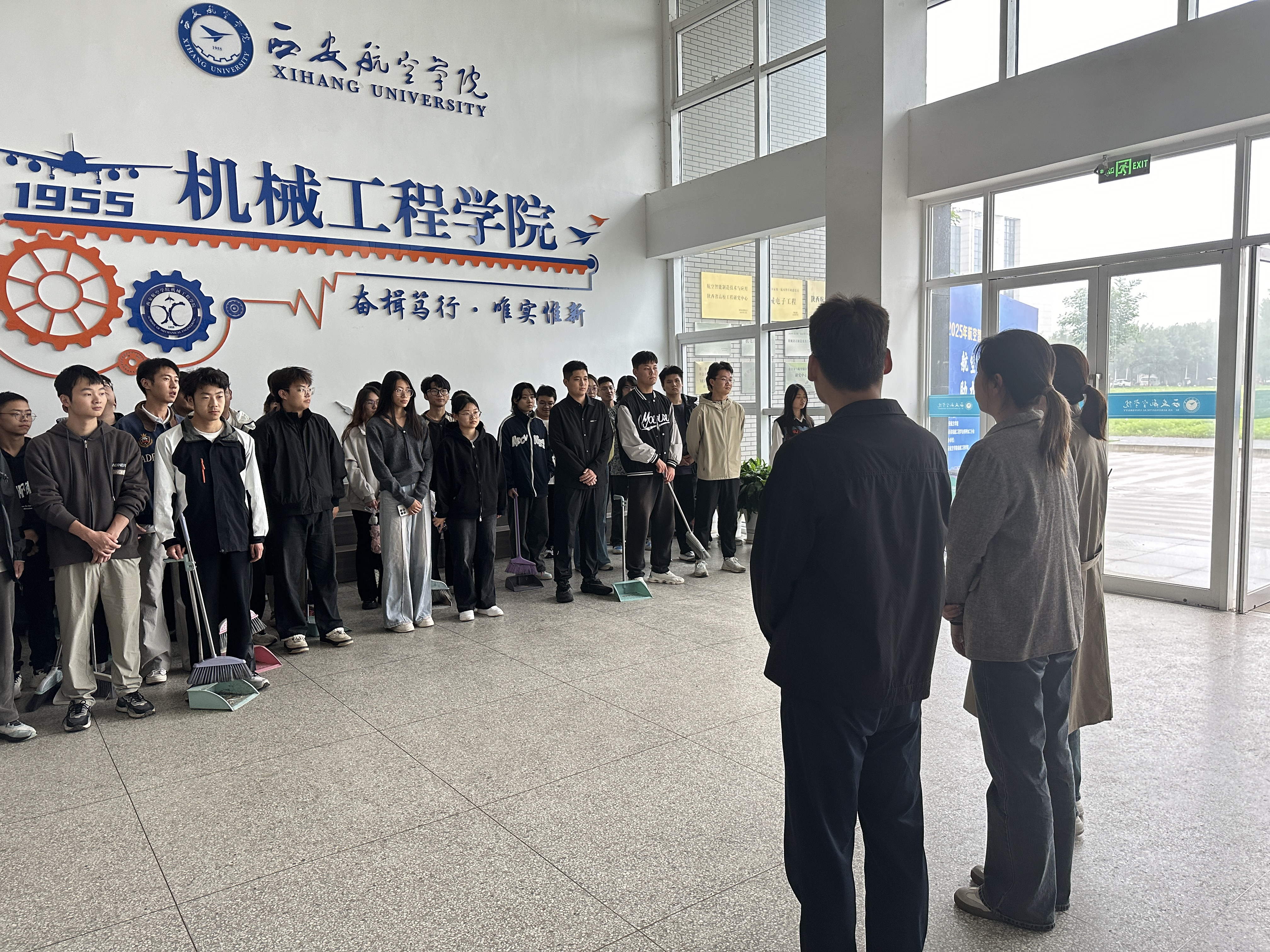 动员结束后,学生干部制定了详细的清扫方案,根据责任片区明确分工、细化任务,身着红色志愿服的队员们迅速集结携带扫帚、抹布、垃圾袋等工具,投入到清扫行动中。从3号实验楼的入口广场到周边的绿化带,从门厅、楼道到盥洗间,每一处都留下了同学们忙碌的身影。他们不怕脏、不怕累,有人清扫地面垃圾,有人清理卫生死角,有人认真擦拭公告栏和窗户,有人合力搬移整理杂物,用耐心和细心为校园“梳妆打扮”。